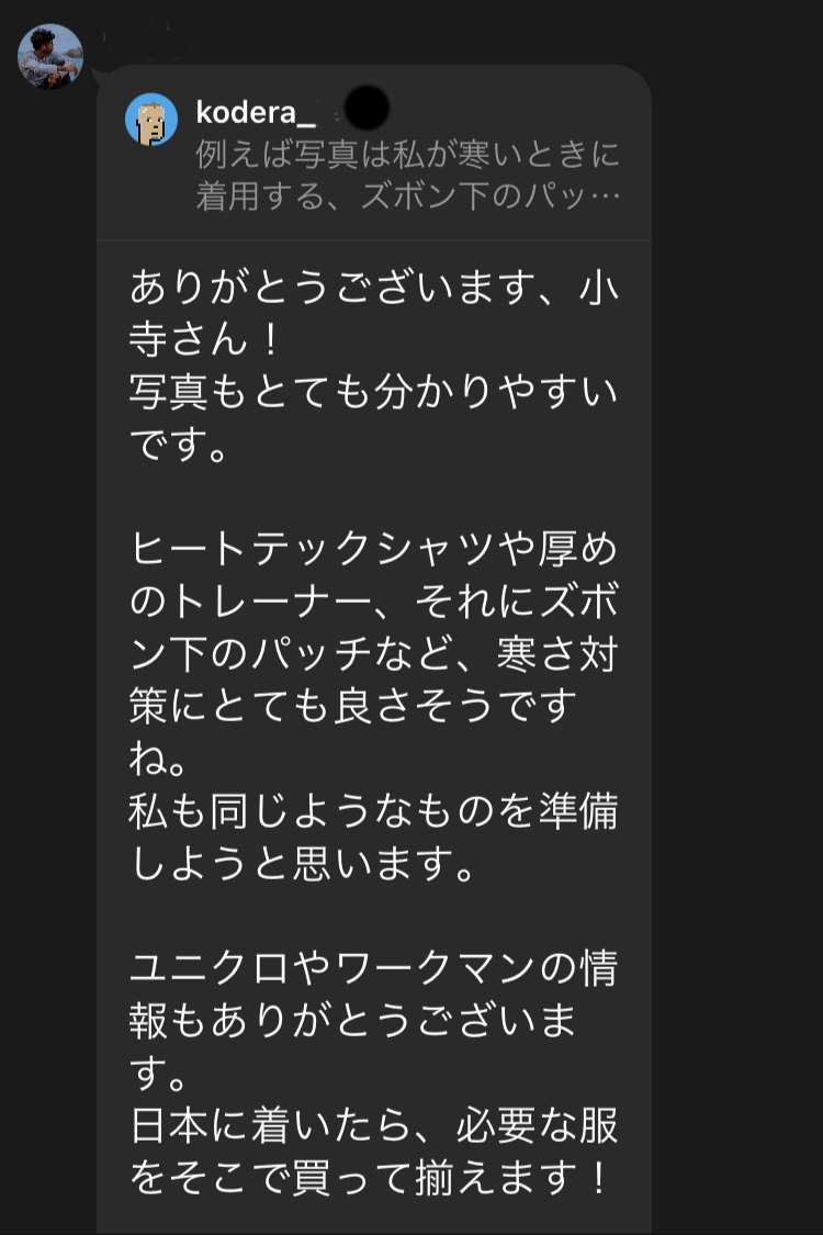 作業服の下に着るものとか、なかなか実践的な質問を投げかけてきてうれしくなる。